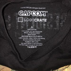 NWOT Resident Evil VII LootCrate Exclusive T-Shirt. Black. 100% Cotton. Men's Size L. Graphic on front and back. 100% cotton means your skin can breathe no matter how long you sit in your gaming chair, trying to beat the mother, and it is easily washed if you spill your Mountain Dew when you jump because she jumps out at you to fight! The black color will also disguise your tears from fear of all the other creepy stuff in this game!
