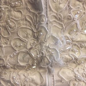 Beautiful wedding dress. Minor wear and tear shown in close up pictures. No major problems with dress. Minor problems are very unnoticeable. Says size 8 but wedding dresses run smaller than usual! I am a size 4 dress and this is a little bit tight on me. PLEASE MAKE ANY OFFER! PRICE IS NEGOTIABLE!