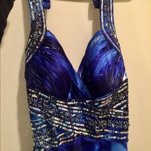 Beautiful beaded Catchet prom dress. Only worn once. Size 4 (I'm about 125, 5'4). 100% polyester. Such a comfortable/lovely dress, I will just never wear it again. I paid about $250 for this dress at Lord & Taylor. Make me an offer! Smoke free home, also has been in a bag hanging in my closet for about a year now. Nothing was altered on this dress!