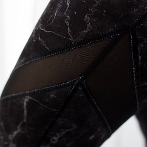 Last one! Only size L left! Not restocking. S and M sold out.◽️Workout in style! Sleek marble design with mesh. Stretchy + breathable material with a cool + smooth feel. If you also love athleisure, pair with a white T + sneakers 👟. Stretch waistband is flattering on the tummy. Poly/12% spandex. 9" rise unstretched (taken from size M). Back zipper. Cropped capri length.