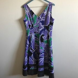 Nine West purple fit and flare sundress with stitch detailing. 97% cotton, 3% spandex. Colors are purple and black. Like new condition. Worn once and dry cleaned!