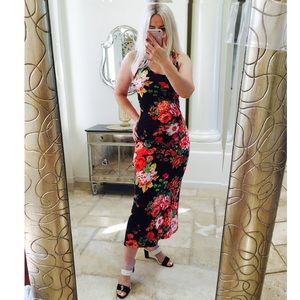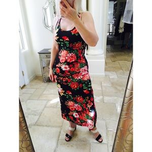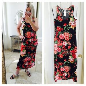 Dress floral stretch maxi tank racerback long