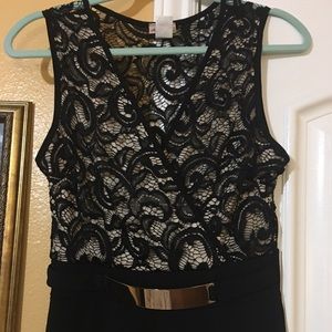 Beautiful black pantsuit, top is made of lace with a cream colored lining and back is just see through lace. Gold metal decoration in the waist. In excellent condition. Open to offers.