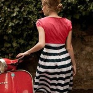 Cutie Pie "Shabby Apple" Vintage Style Dress. I LOVE THEIR BRAND!! The measurements from shoulder to shoulder are 13in, Across the chest from under the arms are 15in, Waist 12.5in, And the dress does stretch a bit an extra 2 inches. From shoulder to waist it's 14 inches. Pics also shows a 12yr in the dress about 110lbs 5ft tall.