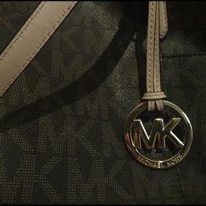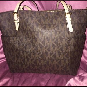 michael kors large jet set tote bag. i used this bag forever and it is still pretty much in perfect condition there is minor peeling on the straps but it isn't even noticeable! made out of the scratch proof water proof material!:) super clean inside as well!!