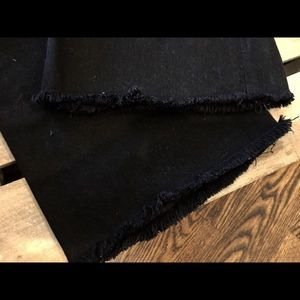 These are the heavier denim HUDSON "great ass" jeans with the triangle-patch back pockets. They have 2% stretch. I probably wore them 4-5 times. They are still nice and black. The bottom hem is nicely fringed (less than 1/2"). Its more like 'fuzzed'. You can see the pic. They are still super long, and one of the most flattering jean styles ever! CHECK MEASURMENTS. Waist: 32". inseam: 32". rise: 8.5" Ankle opening: 9" All measurements. Approximate.