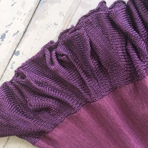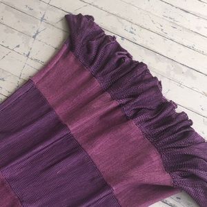 A stunning on trend, two piece slightly cropped tank w/ maxi skirt. This woven designer creation, is in tiered ombré effect, in fuchsia, purple, and wine mix of yarns, by TAMARA CATZ❗The tank is 22" long and the skirt is 42" long. The skirt's ruffled hem has amazing weight to it, for lots of swing and motion while walking👌 Perfect for a festival❗My photos can not capture the beauty of this outfit......*From a smoke free home.