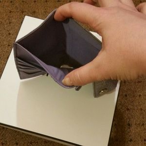 Cute small Express wallet. Textured outside. Snaps work. Zipper works. Great wallet for smaller purses and holds a lot of stuff!
