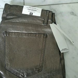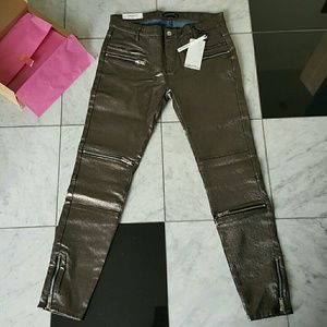 Zara Premium Denim Collection Metallic biker trousers with zipper details. Size 4. Color is a golden bronze.
