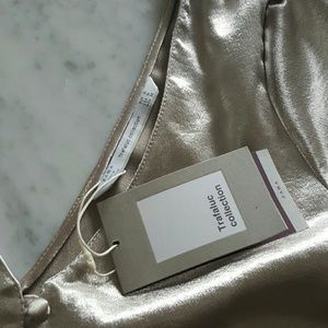 Authentic Zara Shiny Short Top (8238). Color is Champaign. Double V Neck cut open back, botton detail V Neck front.