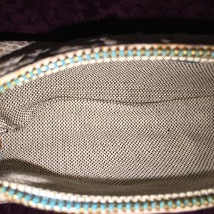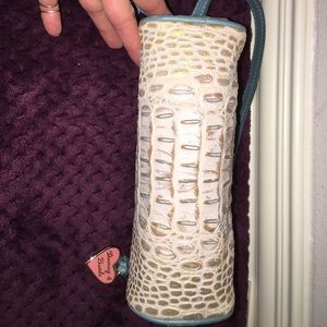 ** SOLD ** Dooney & Bourke in cream and light brown/gold croc pattern leather with turquoise teal trim and strap NWOT