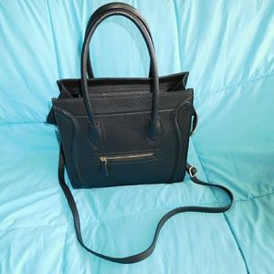Black genuine leather purse with gold hardware, comes with shoulder strap. Perfect condition!