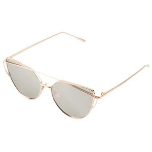 NWT boutique item. Trend Alert❣ Silver Lens & Gold Frame Cat Eye Aviator Sunnies! Also available in 4 other colors: Rose Gold Lens & Gold Frame, Red Lens & Black Frame, Silver Lens & Silver Frame, Blue Lens & Silver Frame. Please message me if you're interested in any of the other colors! Lens Material: Polycarbonate, Frame Material: Copper. Lens Optical Attributes: Mirror, UV400, Anti-Reflective