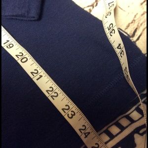 Very cute and perfect for spring. Not too heavy, it's just right. Front pocket. Navy blue. Measurements lying flat Bust 19" length 24.5"