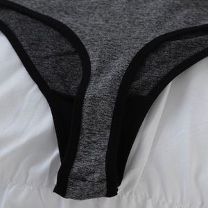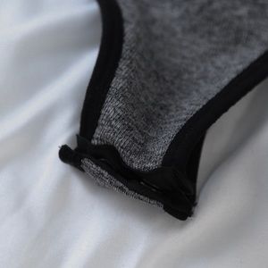 ◽️This seamless bodysuit is an absolute wardrobe staple! Super soft and stretchy material. I love the gray and black trim of this one. Minimal piece easily matches with everything. Nylon/poly/spandex. One size - best fits 0-8. Thong bottom and snap closure. This seamless material is my personal favorite for bodysuits - it is very stretchy for all body types and feels like second skin.