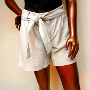 Classic Pleated Shorts on Beige Suede, belted and side pockets.