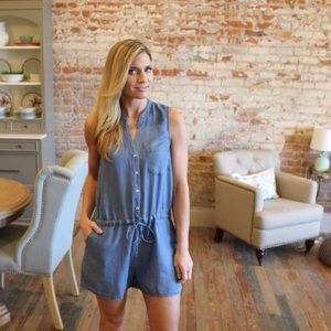 Super cute tencel denim romper. Adjustable waist. Modeling size small. 100% tencel. Bust laying flat: S 18" M 19" L 20" Length S 33" M 34" L 35" , length waist down: S 13" M 14" L 15", inseam 3". Add to bundle to save when purchasing. AB10260303