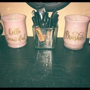 One custom made makeup brush holder, your choice of one handcrafted glitter makeup brush holder- comment me your color and phrase preferences after purchasing!!