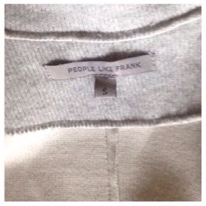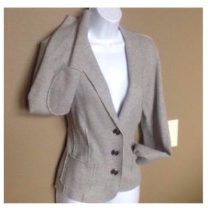 Beautifully tailored french terry blazer by People Like Frank. Worn once or twice. In like new condition. Cozy unlined 100% cotton. Features elbow patches and fitted raw edge sewn design. Pewter metal three button front, patch pockets. Dry clean only. Laying flat bust measures 34", sleeves 24.5", from top of collar down center back 23". No trades ever