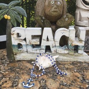 Anchors away! Nautical themed necklace! Blue and silver beads with anchor pendant.