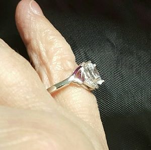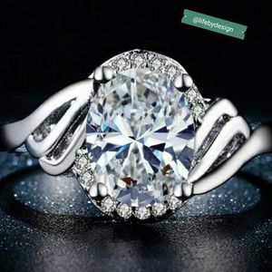 Sizes 7 & 8 available. Center White Sapphire with surrounding Cubic Zirconias set in Sterling Silver. Dazzling!