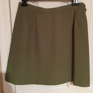 Purchased at Lord & Taylor and worn once. The suit has been dry cleaned. The color is army green. I would like to see the skirt and jacket together. Jacket- M Skirt -11-12. Jacket sleeve length-22.5"