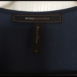 Like new. Size small. BCBG MaxAzria navy blue dress. Small black belt loops on each side of dress. Belt in picture is not included. I found a very small imperfection when I got the dress out to get pictures in better light. See pic 8. Price adjusted. Evening, cocktail, formal, wedding, gala. Questions? Please ask!