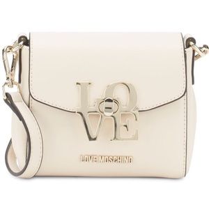 NWOT- Wear your love on your bag with gorgeous petite LOVE MOSCHINO crossbody bag in Ivory vegan leather. A real stunner for your everybody essentials or an enviable plus+1 for a night on the town! Removeable/adjustable crossbody strap (22" drop) brings convenience to this luxe design with front fold over twist-lock closure in signature gold tone hardware. Interior is lined in cocoa logo fabric with single interior open pocket. Express your inner chic today!Dimensions: 5.5" W x 5"H x 3"D