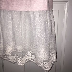 NWT! LC Lauren Conrad long tunic sweater in a perfectly feminine blush pink with sweet little satin bows tying a slit detail on the upper sleeves - almost a cold shoulder. Super soft and slightly fuzzy. Darling white lace panel around the bottom. Sweater is 83% polyester, 14% rayon and 3% spandex. Lace is 100% nylon with 100%cotton embroidery. Have a girly day🎀👯🎀 size M. Bundles are only 2 items! Bundle and make a nice deal for yourself. 🎀🎀🎀