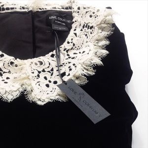 The Roxy Babydoll Dress draws from both grunge & vintage inspo. Lux black fully lined structed velvet fabrication, romantic goth goddess delicate off white lace collar. 2nd collab Dress from Courtney Loves collab with OG Nasty Gal