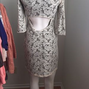 Shoulder seam to hem approximately 32". Fully lined, lace overlay, black cut out. The perfect date dress! #1251714-22