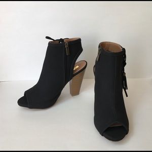Block heels, tassels, and cutouts, these booties hit all this season's top trends! These booties have an open toe and cutout back. There is a side lace up detail with a side tassel.