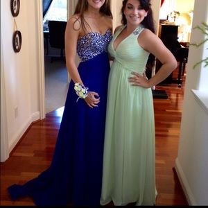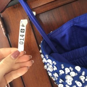This dress was the most comfortable prom dress i have ever worn. It is amazing quality. The built in bra made the dress feel so secure on the breasts that I totally forgot the dress was strapless. This dress has been worn once to my prom bur has zero signs of any wear. All the sparkles are attached & the bottom has no stains or holes. The dress has be dry cleaned & is ready to be shipped out! Feel free to ask me any questions :-)