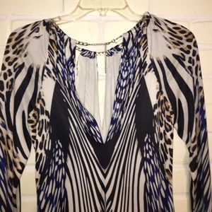 This Zebra and Leopard print cocktail dress will make you the queen of the jungle. Very sexy yet classy. The dress is 95% polyester and 5% spandex.