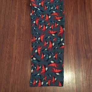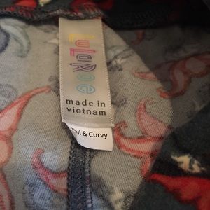 Lularoe Tall and Curvy Leggings. Gray-green fairy design. Orange, blue and white details. Soft and supple fabric. Rare unicorn. 92% Polyester 8% Spandex. Made in Vietnam. Gentle wash cycle