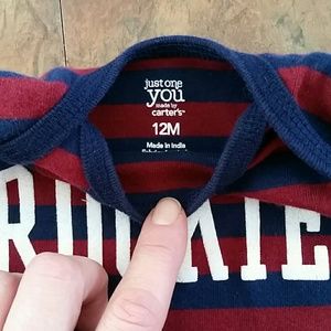 These are adorable little toddler jean overalls and Carter's onesie. In EUC. The onesie was never worn. The overalls have the button crotch for easy diaper changes! They are size M (6-12mo) and the onesie is 12 months but runs small.