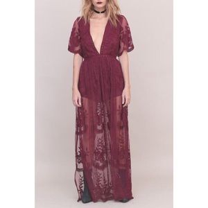 ✖️SOLD✖️Wine Lace Overlay Romper Maxi Dress