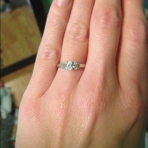 Elegant 3 diamond engagement ring with a white gold band. Classy and understated.