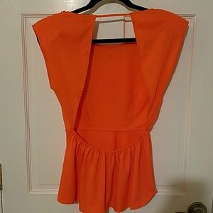 This coral/tangerine peplum blouse with attached necklace has a sexy open back perfect for a hot summer night!!!