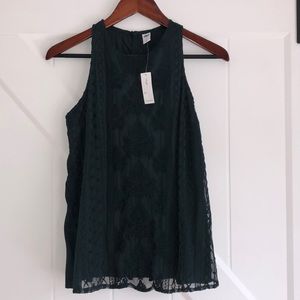 Color: glorious pine. I ordered this online and I forgot to send it back within the timeframe. New with tags. Cute keyhole with button closure at neck. Embroidered lace with lining underneath.
