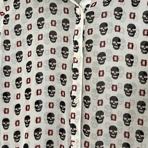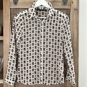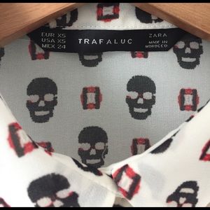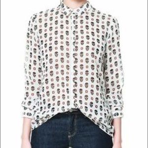 Beautiful long sleeve Zara Skull buttoned down shirt blouse perfect for casual night out, Halloween party, get together, etc.