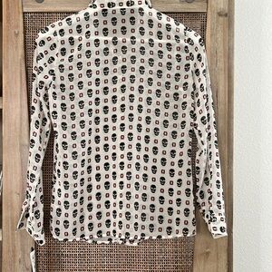 NWT Zara Skull Print Long Sleeve Button Front Shirt size XS