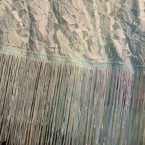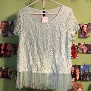 NWT H&M fringe lace top, pale aqua color. Really soft!! Perfect with a black mini!