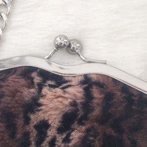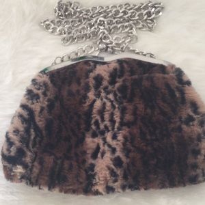 APT 9 faux fur bag with silver toned chain strap. silver kiss lock top clasp . Excellent condition, used only once.