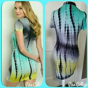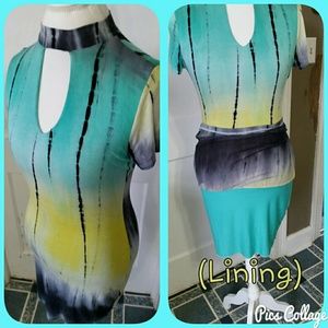Teal, mint, golden lime, tie-dye, body con, date night, party dress, club, clubbing, dance, sexy, keyhole neckline, special occasion, holiday, New Year's Eve