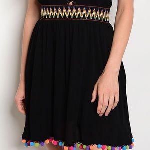 Beautiful little black dress with adorable multicolored Pom Poms!! This dress screams take me to the beach, music festival or ever taco night with the girls! Has zipper down side of dress. Also available in White! Happy Poshing!  Great for Mexico, Hawaii, California, Florida, Coachella, Bonnaroo.