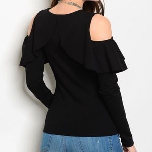 CLEARANCE Lattice Cold Shoulder Black Ruffle Top