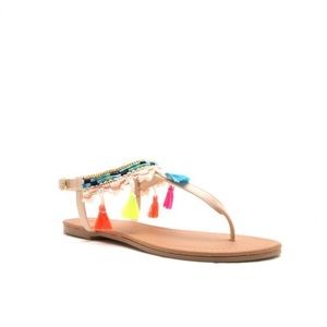 NWT. Colored fringe tan sandals. -1/4" heel -faux suede/leather -true to size -comes in the original box -no trades