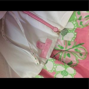 Pink and green Lilly Pulitzer strapless dress with crinoline. This is THE perfect summer dress. Classic Lilly colors and design with a full skirt! Dress is gently worn and in great shape. Some discoloration on inside of dress from the boning.