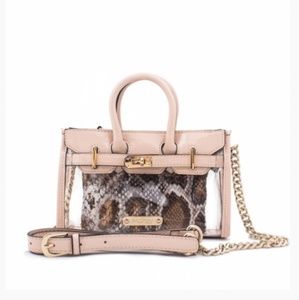 Brand new in package, never used, never opened. Sleek and modern Kate mini bag by Mohzy. Bag is transparent with removable snakeskin pouch inside. Honey Bear says "What a sweet deal!" ❤️